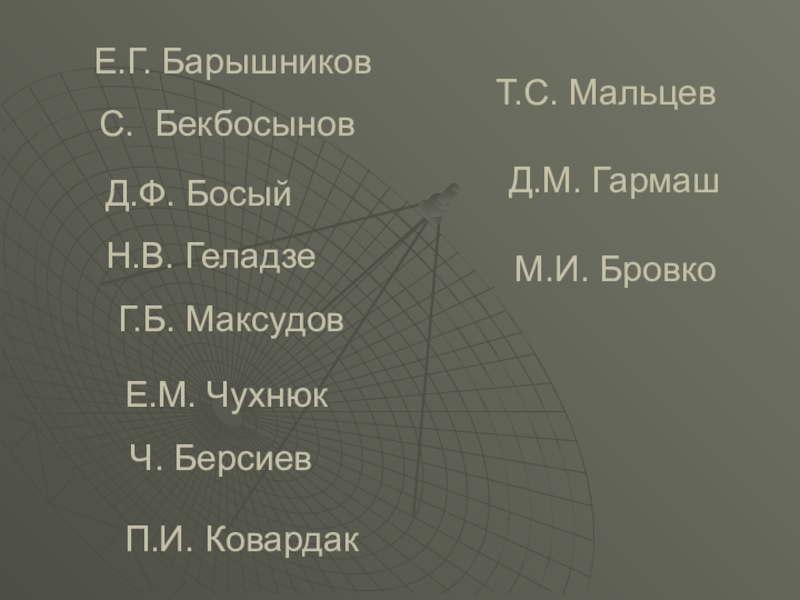 Е.Г. БарышниковС. БекбосыновД.Ф. БосыйН.В. ГеладзеГ.Б. МаксудовЕ.М. ЧухнюкЧ. БерсиевМ.И. БровкоД.М. ГармашП.И. КовардакТ.С. Мальцев