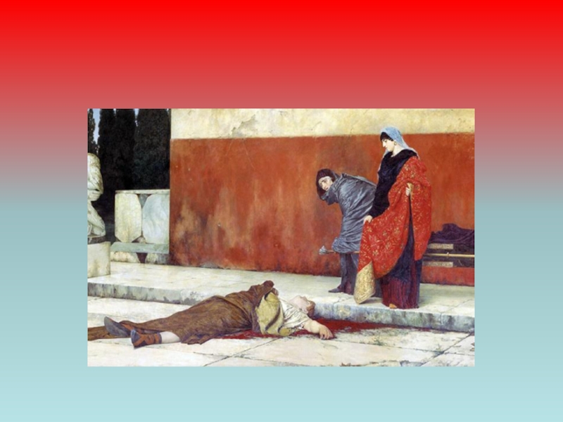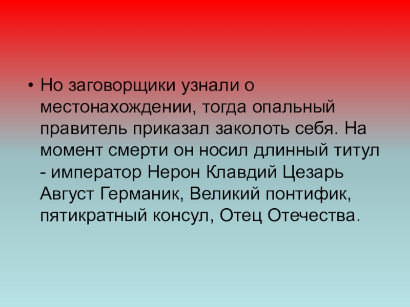 Слайд 23Но заговорщики узнали о местонахождении, тогда опальный правитель приказал заколоть себя.