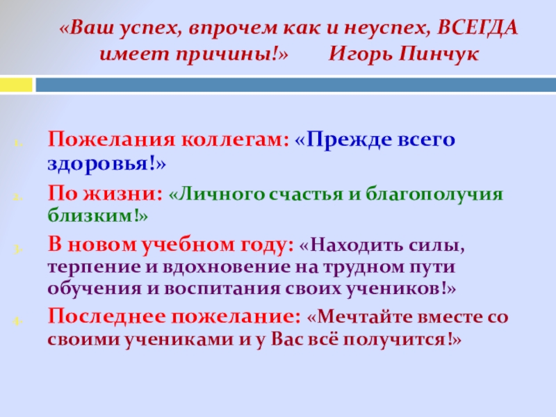 Последнее пожелание: «Мечтайте вместе со своими учениками и у Вас всё получится!»