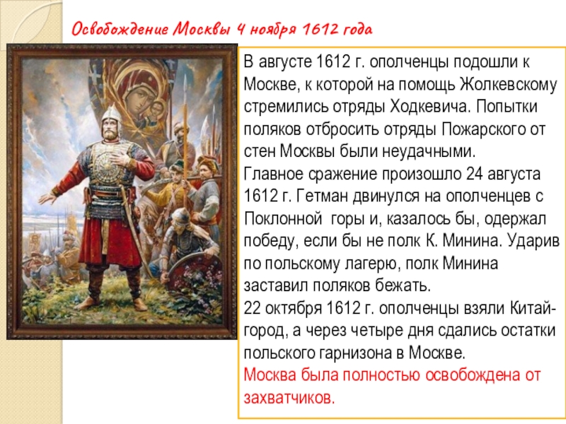 Благодаря героической борьбе против иноземных захватчиков была спасена целостность и независимость России.