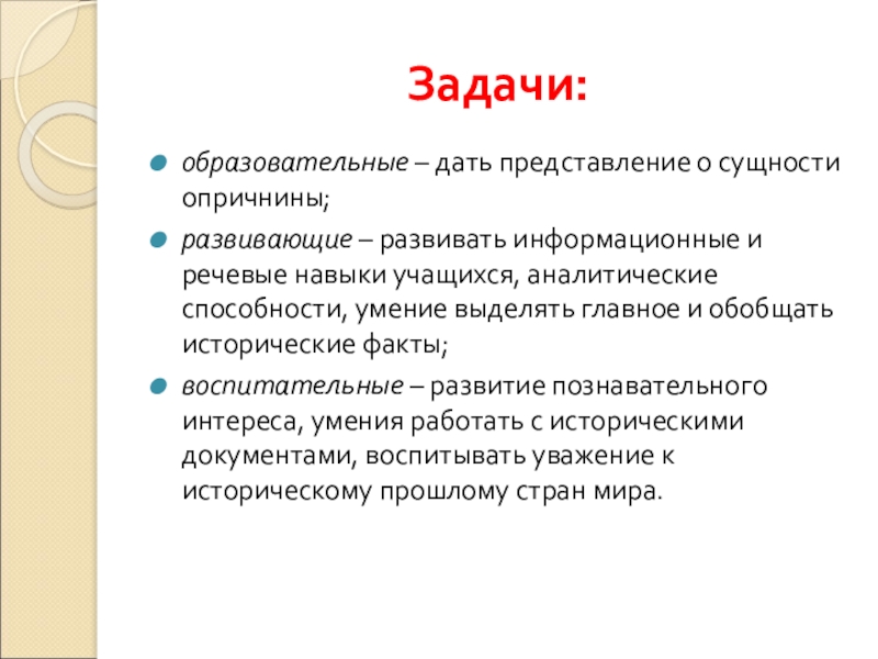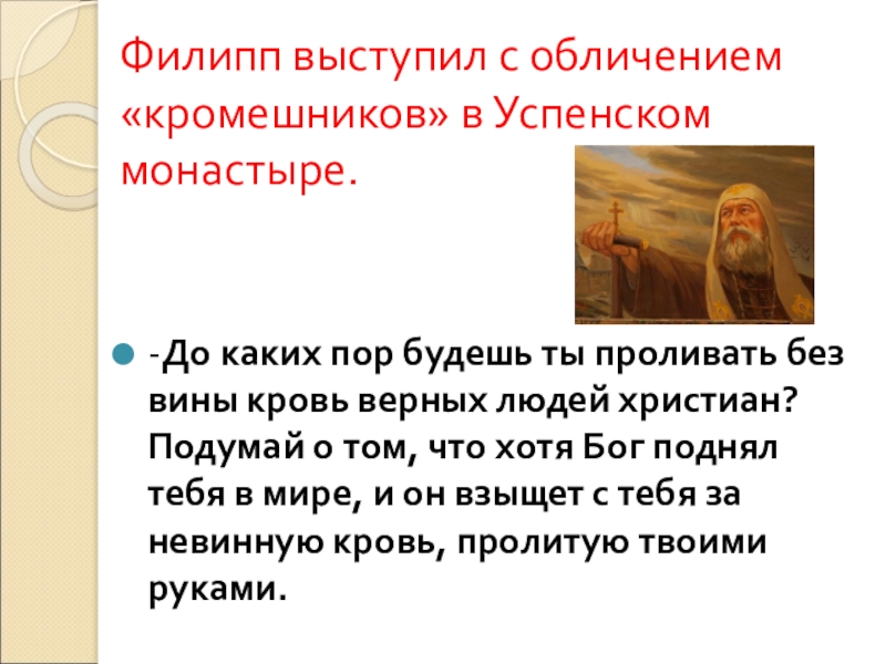 В Москву он не вернулся, скитался несколько недель в ее окрестностях, пока не поселился в 65 верстах от столицы в Александровской слободе. 3 января 1565 Иван Грозный объявил о своем отречении от престола по причине «гнева» на бояр, воеводских и приказных людей, обвиняя их в измене, казнокрадстве, нежелании «воевать против недругов». Посадским же объявил, что гнева и опалы на них не имеет.