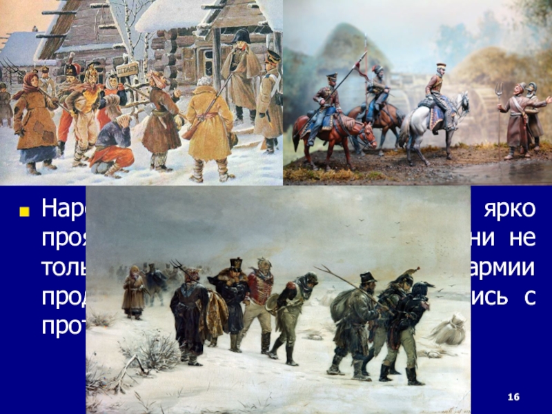 Народный характер войны наиболее ярко проявился в действиях крестьян. Они не только оказывали помощь русской армии продовольствием, но и сами боролись с противником.