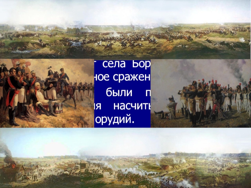 Наполеон имел 135 тыс. человек и 587 орудий. Крупнейшее сражение войны началось 26 августа 1812 г. в половине шестого утра.