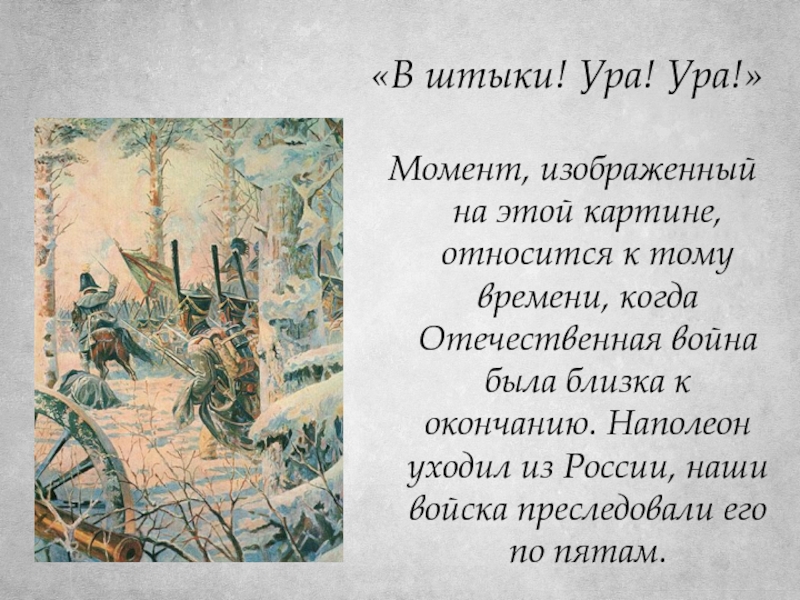 времени, когда Отечественная война была близка к окончанию. Наполеон уходил из России, наши войска преследовали его по пятам.