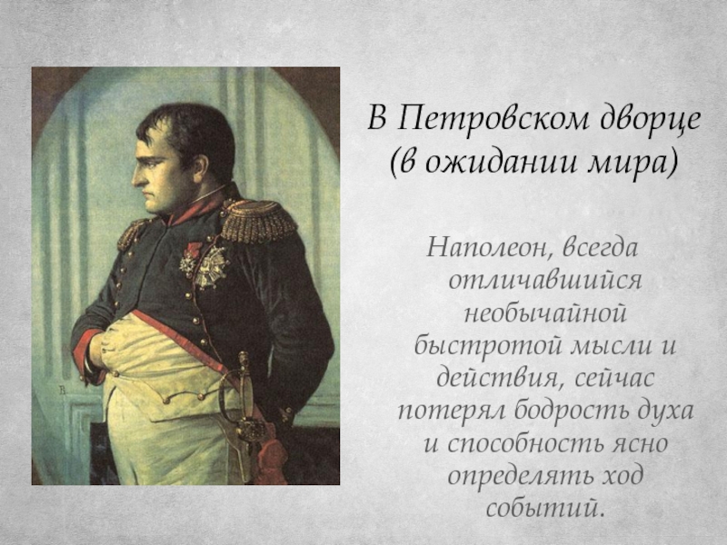 и действия, сейчас потерял бодрость духа и способность ясно определять ход событий.