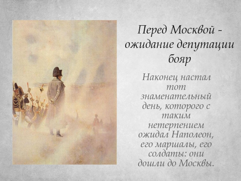 день, которого с таким нетерпением ожидал Наполеон, его маршалы, его солдаты: они дошли до Москвы.