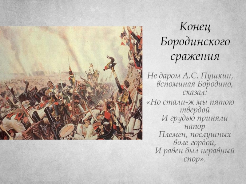 Не даром А.С. Пушкин, вспоминая Бородино, сказал: