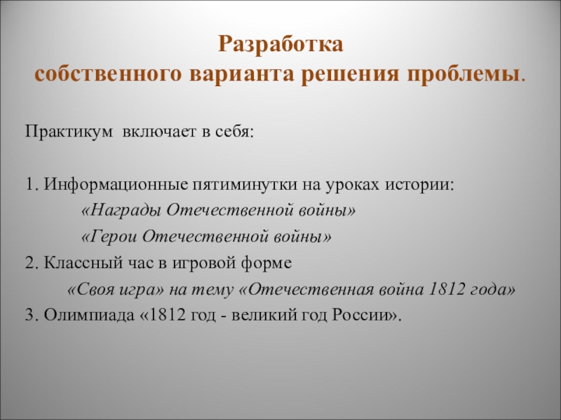 4. Разработать практикум мероприятий для использования в школе на внеклассных мероприятиях.