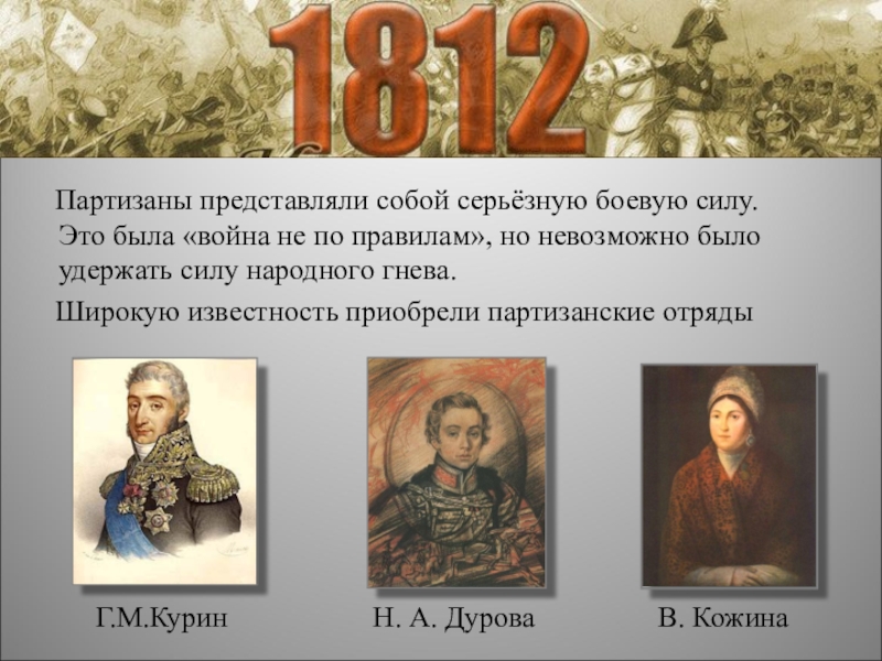 Слайд 201. Война 1812 г. не случайно получила название Отечественной. Народный характер