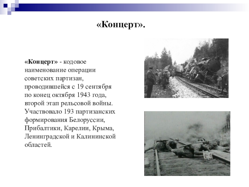 «Концерт» - кодовое наименование операции советских партизан, проводившейся