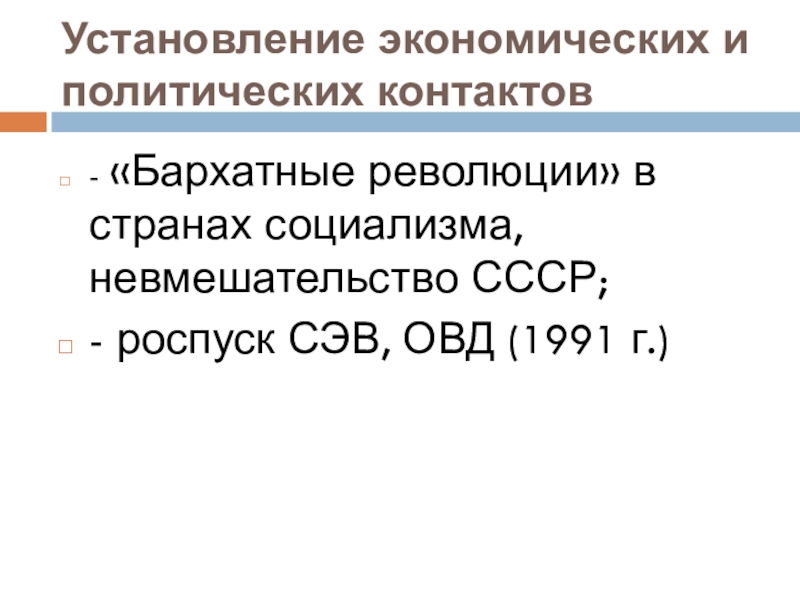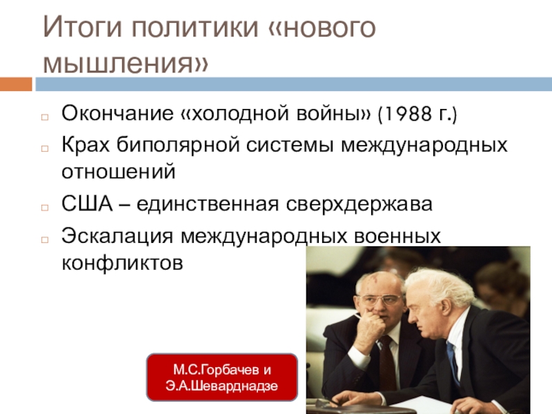 Закончилась «холодная война», но произошло ослабление международных позиций СССР.