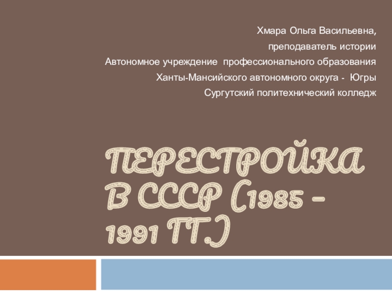 Слайд 1Перестройка в СССР (1985 – 1991 гг.)