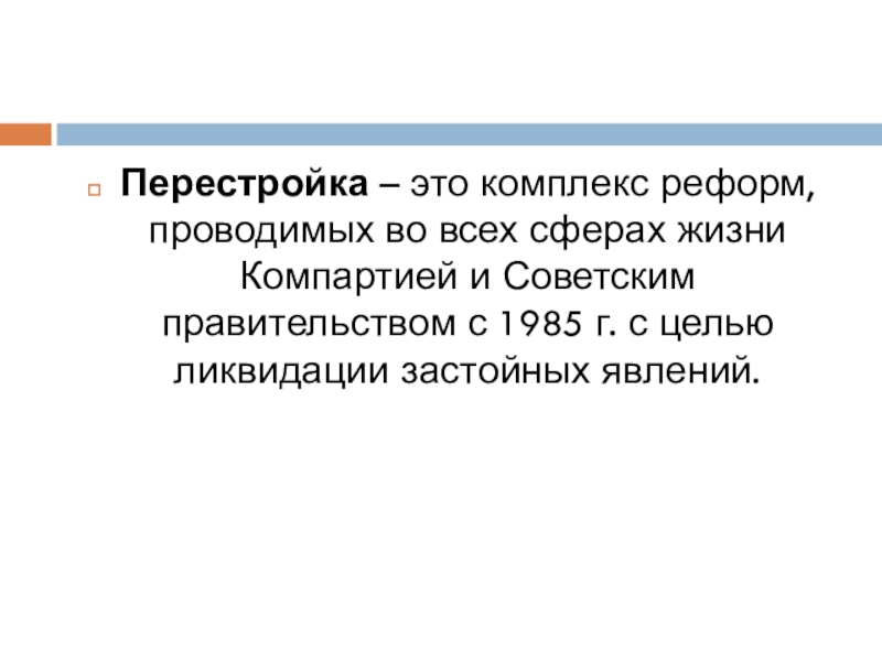 Слайд 5Перестройка – это комплекс реформ, проводимых во всех сферах жизни Компартией