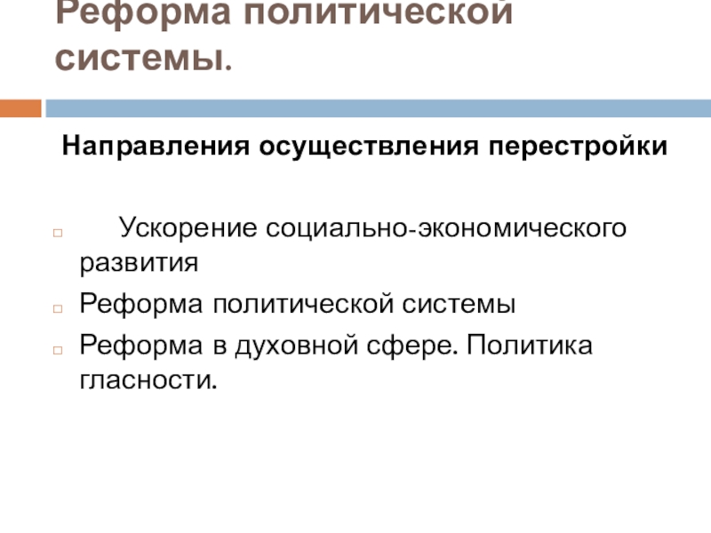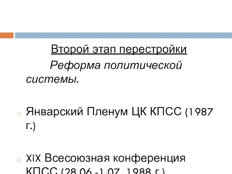 - Разделение властей. Установление двухуровневой системы законодательной власти – Съезда народных депутатов и Верховного Совета СССР, избираемого из депутатов съезда.