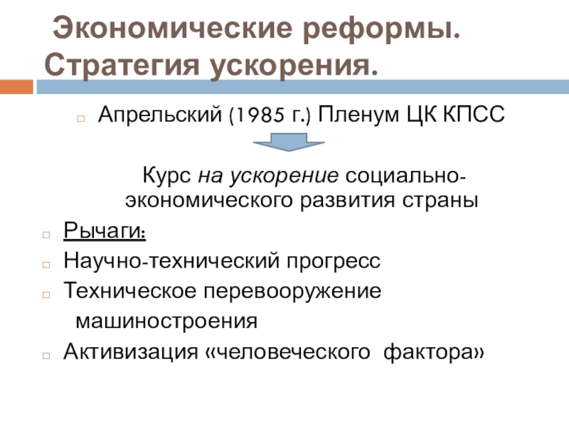 Слайд 14 Экономические реформы. Стратегия ускорения.