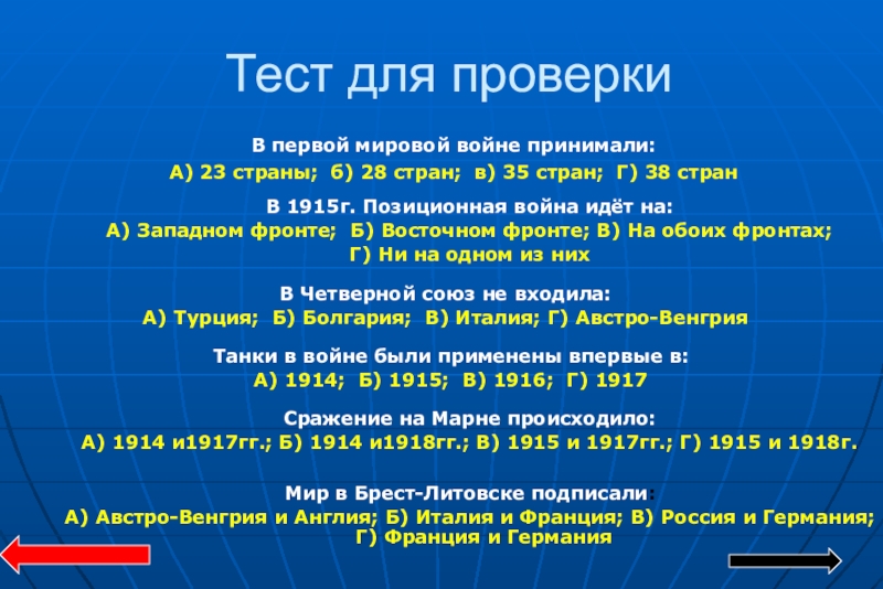 А) Западном фронте; Б) Восточном фронте; В) На обоих фронтах;