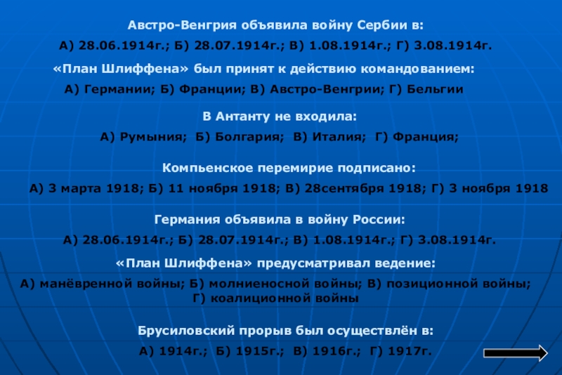 А) Германии; Б) Франции; В) Австро-Венгрии; Г) Бельгии