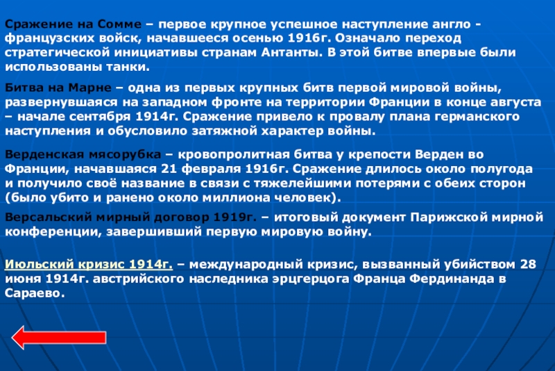 Битва на Марне – одна из первых крупных битв первой мировой войны, развернувшаяся на западном фронте на территории Франции в конце августа – начале сентября 1914г. Сражение привело к провалу плана германского наступления и обусловило затяжной характер войны.