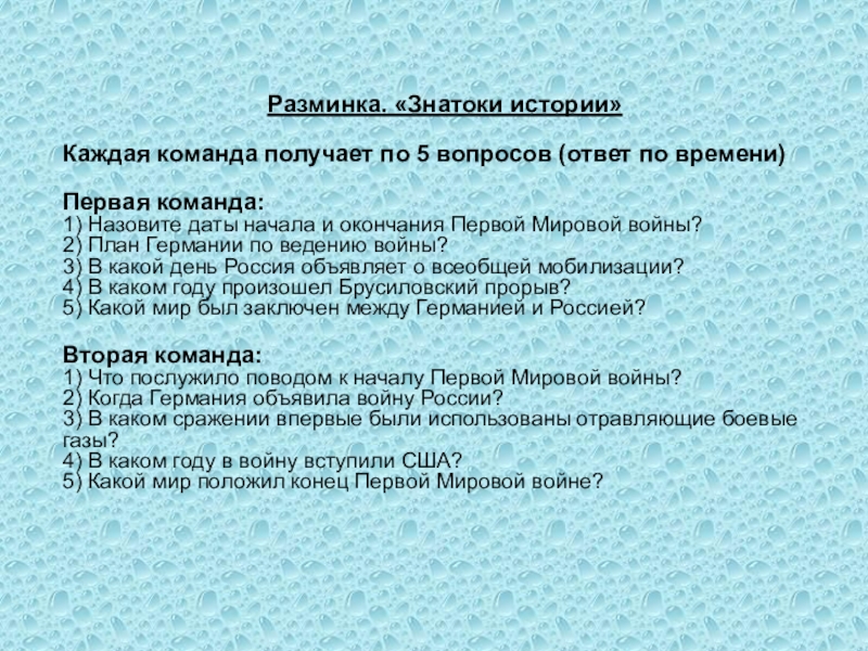 Каждая команда получает по 5 вопросов (ответ по времени)