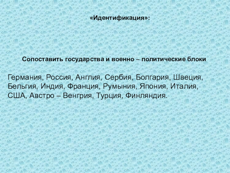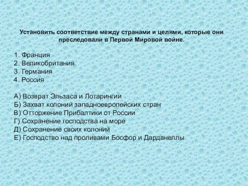 Установить соответствие между странами и целями, которые они преследовали в Первой