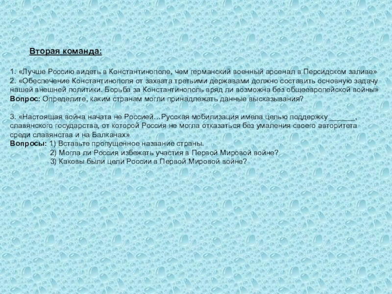 1. «Лучше Россию видеть в Константинополе, чем германский военный арсенал