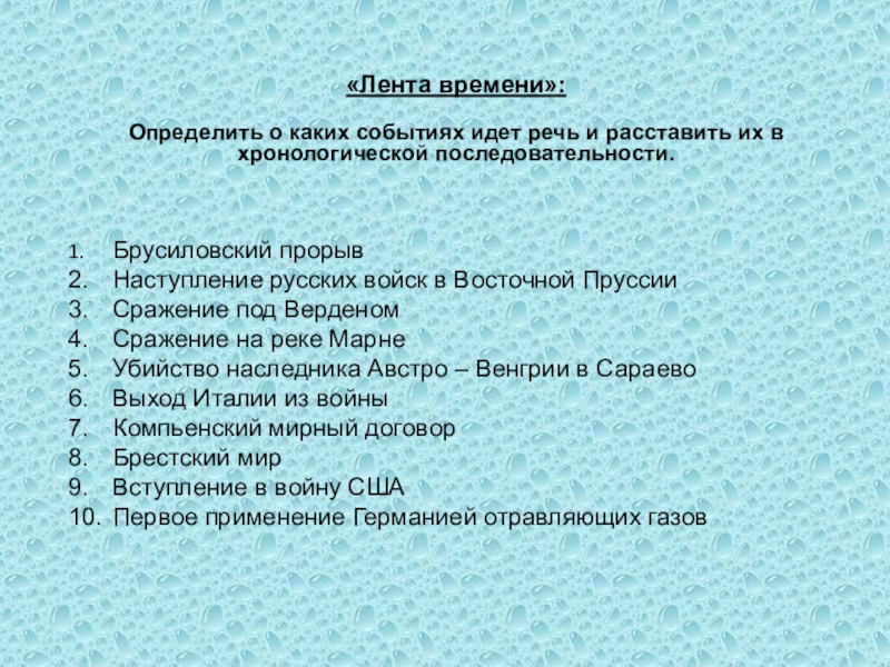 2) хронологически расставлять события, явления и темы, связанные с изучаемым материалом;