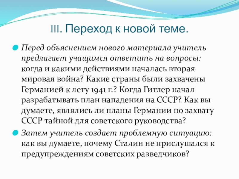 Затем учитель создает проблемную ситуацию: как вы думаете, почему Сталин не прислушался к предупреждениям советских разведчиков?