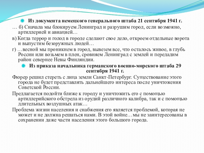 Слайд 13Из документа немецкого генерального штаба 21 сентября 1941 г.