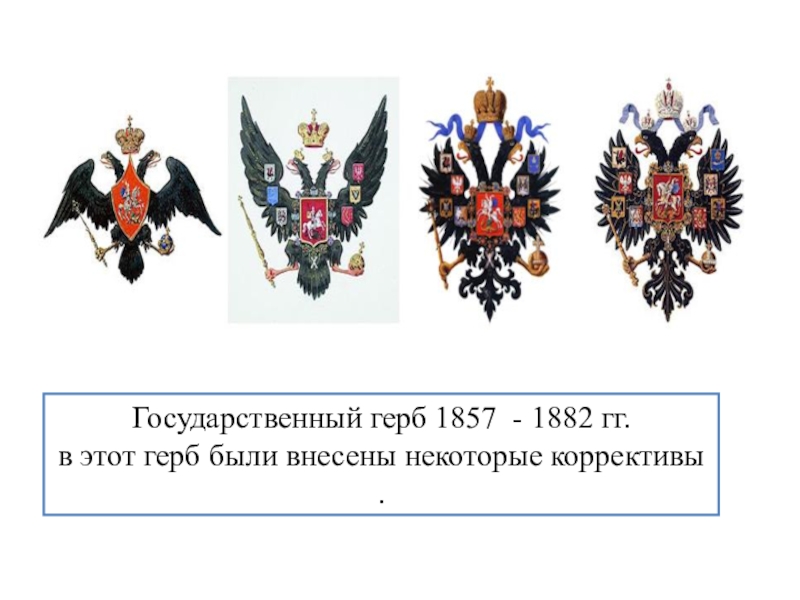 Государственный герб 1857 - 1882 гг. в этот герб были внесены некоторые коррективы .