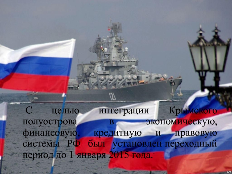 Слайд 12 С целью интеграции Крымского полуострова в экономическую, финансовую, кредитную и правовую