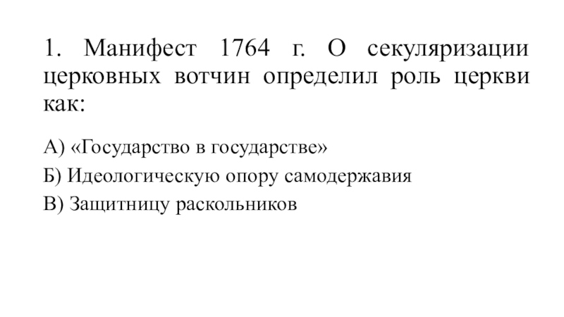 По Манифесту 1774 года Е. Пугачёв освобождал крестьян от крепостной зависимости и рекрутских наборов.