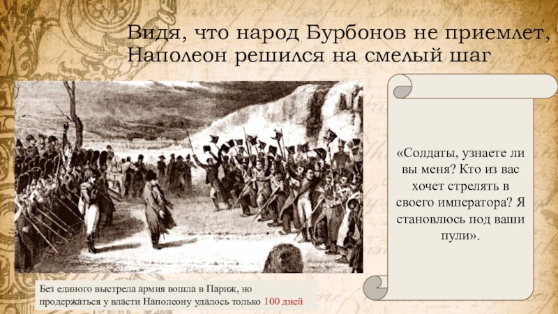 Без единого выстрела армия вошла в Париж, но продержаться у власти Наполеону удалось только 100 дней