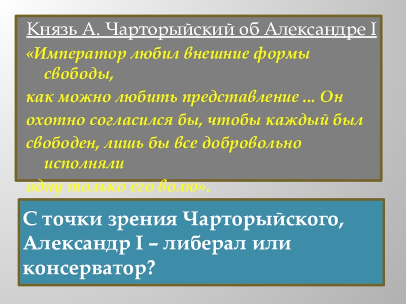 С точки зрения Чарторыйского, Александр I – либерал или консерватор?