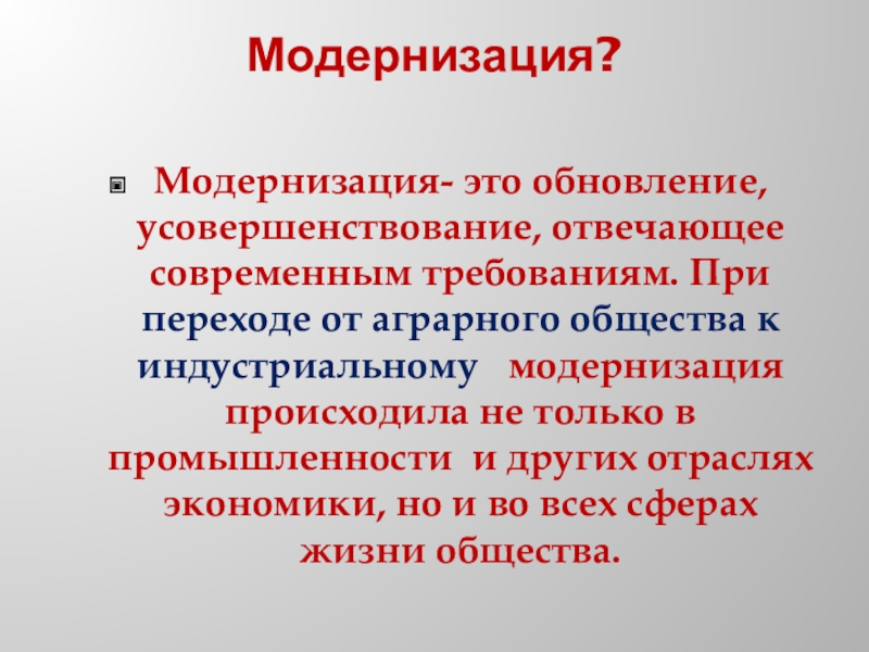 Развитие рыночных отношений во всех отраслях экономики. Промышленный переворот.