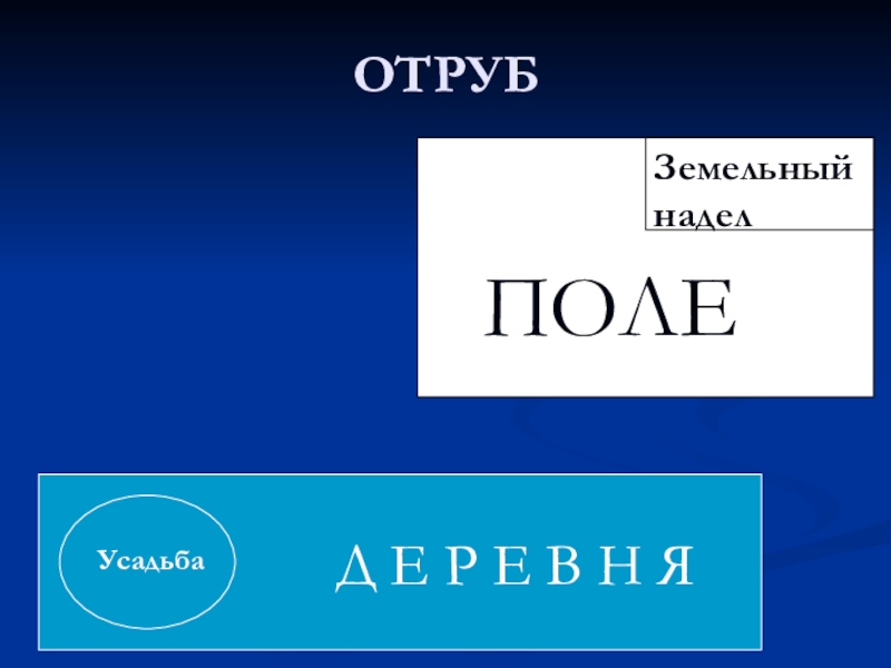 Отруб - земельный участок, выделявшийся из общинной земли в частную собственность отдельным крестьянам, где усадьба не переносится на полевой надел.
