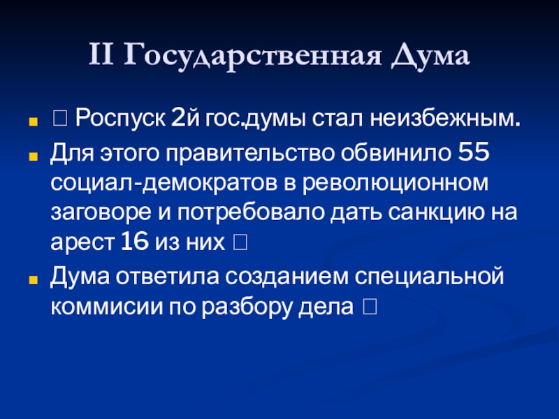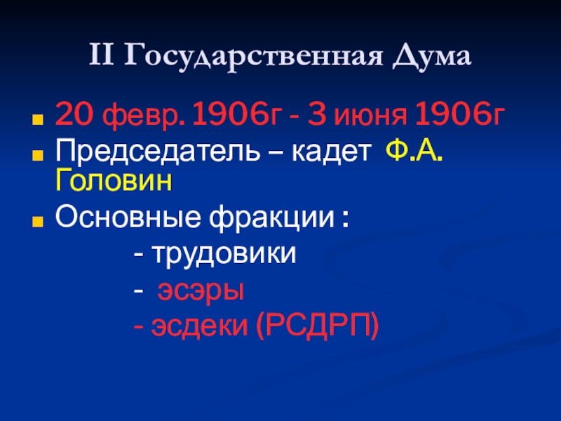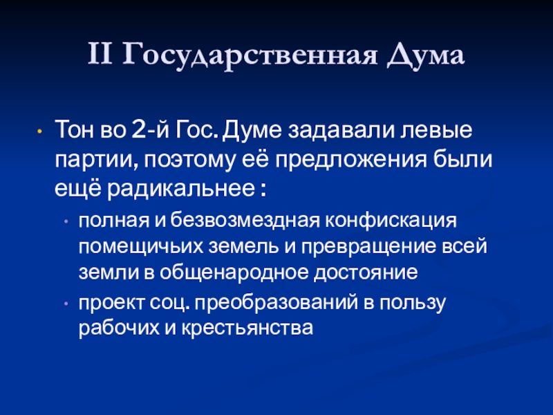 Тон во 2-й Гос. Думе задавали левые партии, поэтому
