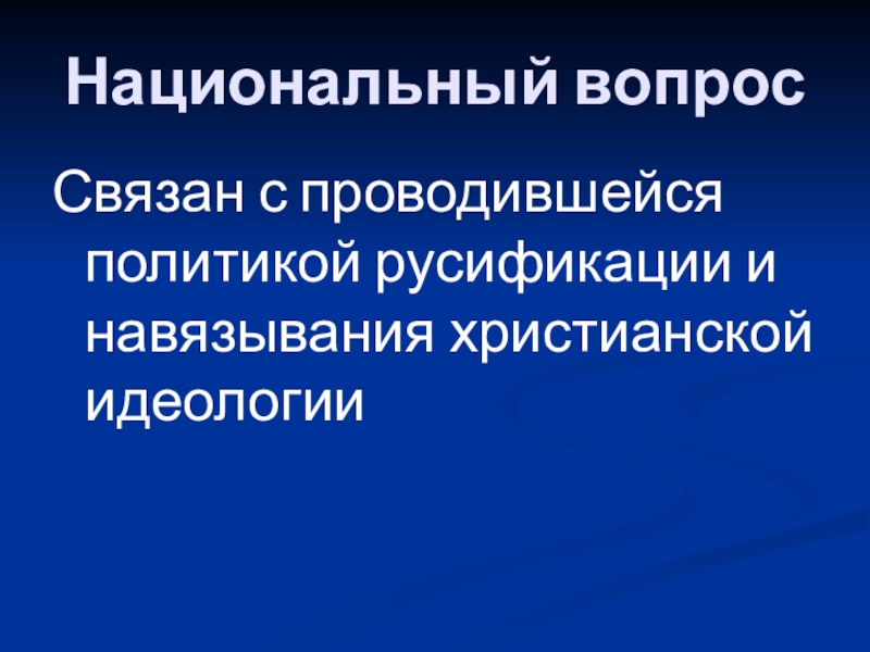 Связан с проводившейся политикой русификации и навязывания христианской идеологии