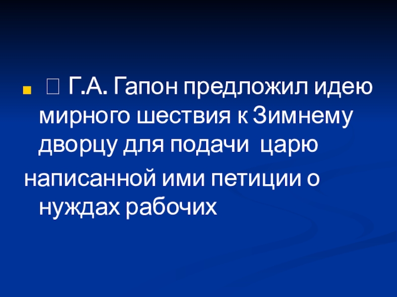 Слайд 15 Г.А. Гапон предложил идею мирного шествия к Зимнему дворцу