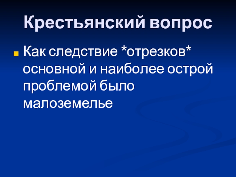 Как следствие *отрезков* основной и наиболее острой проблемой было малоземелье