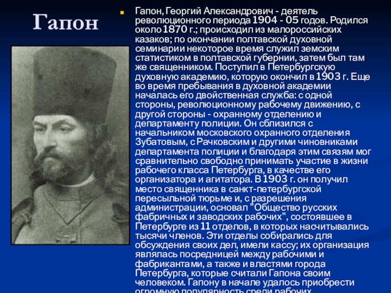 Гапон, Георгий Александрович - деятель революционного периода 1904 - 05 годов.