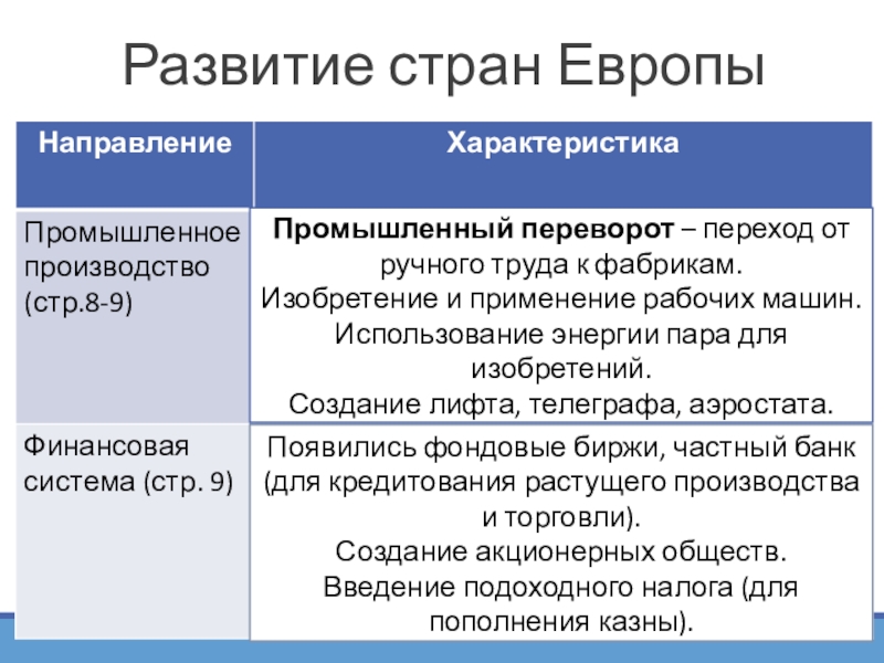 Появились фондовые биржи, частный банк (для кредитования растущего производства и торговли).