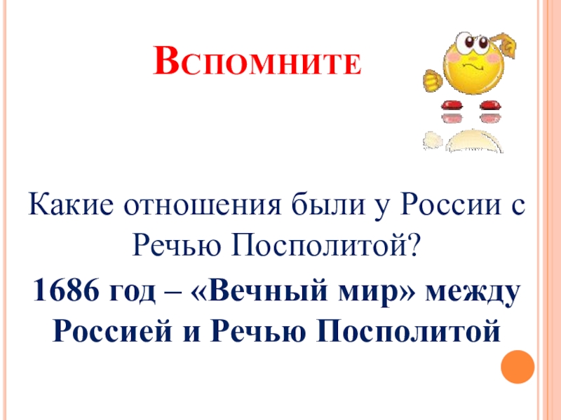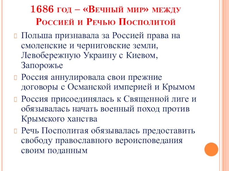 Слайд 151686 год – «Вечный мир» между Россией и Речью Посполитой