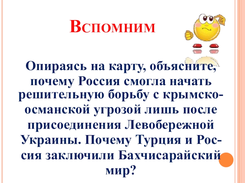 Слайд 9Для чего Турции было необходимо заключить Бахчисарайский мир?