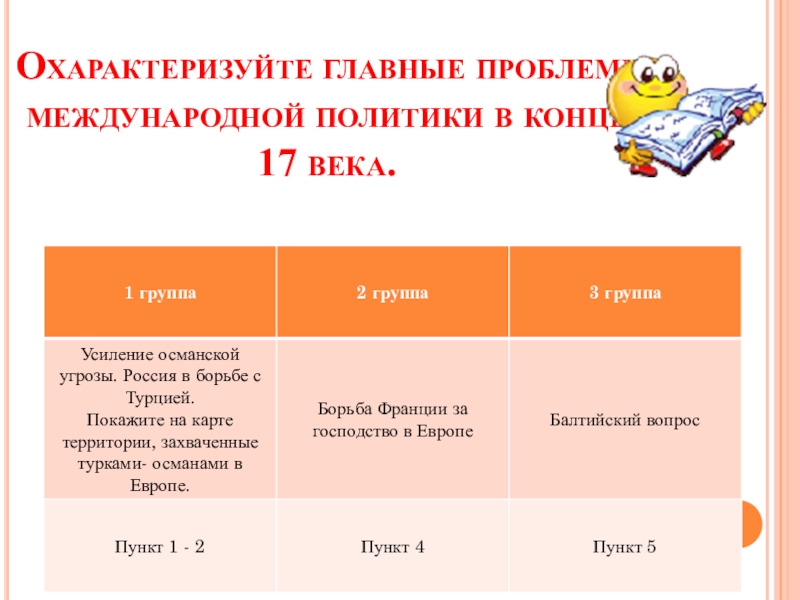 Слайд 6Охарактеризуйте главные проблемы международной политики в конце 17 века.