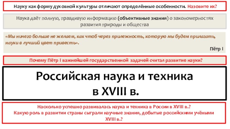 Почему Пётр I важнейшей государственной задачей считал развитие науки?