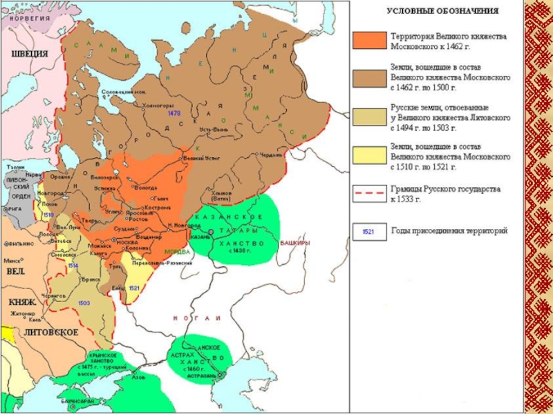 1495-1497 гг. - русско-шведская война за Западную Карелию (Новгородское перемирие 1497 г. – статус-кво, мир на 6 лет)
