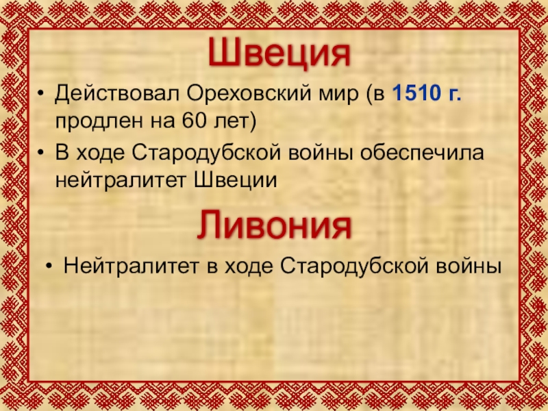 Действовал Ореховский мир (в 1510 г. продлен на 60 лет)