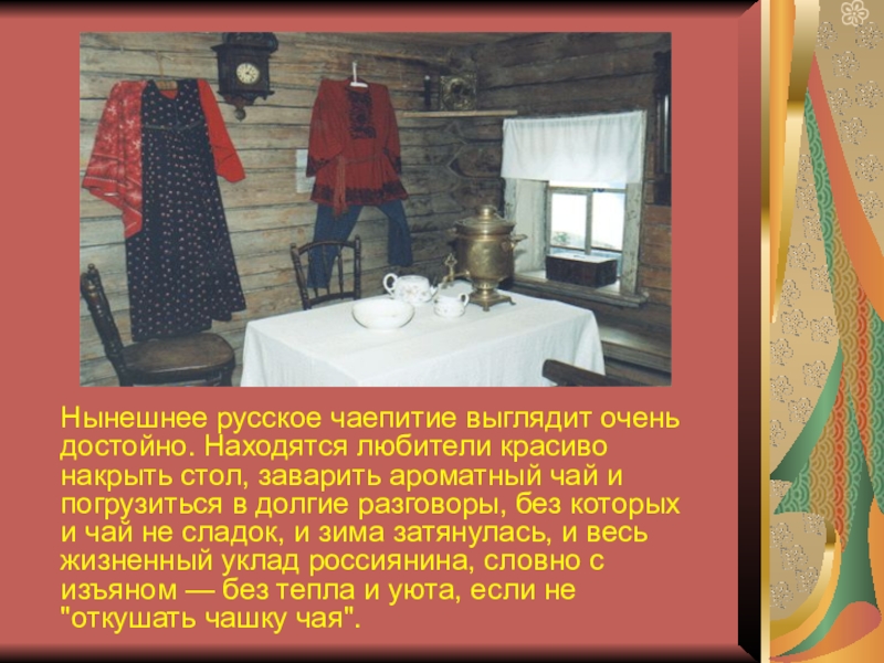Слайд 5Нынешнее русское чаепитие выглядит очень достойно. Находятся любители красиво накрыть стол,