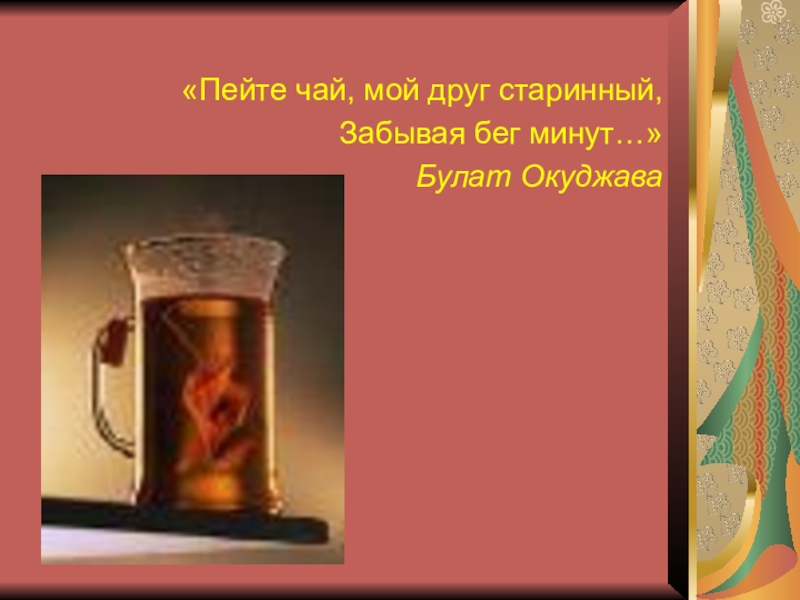 Слайд 2«Пейте чай, мой друг старинный,