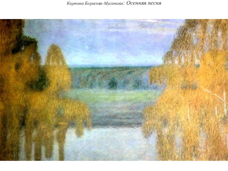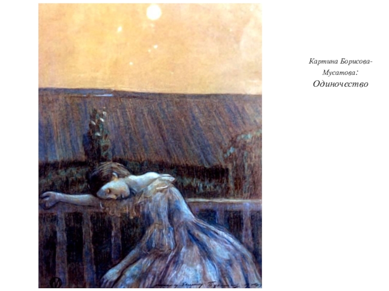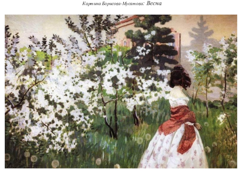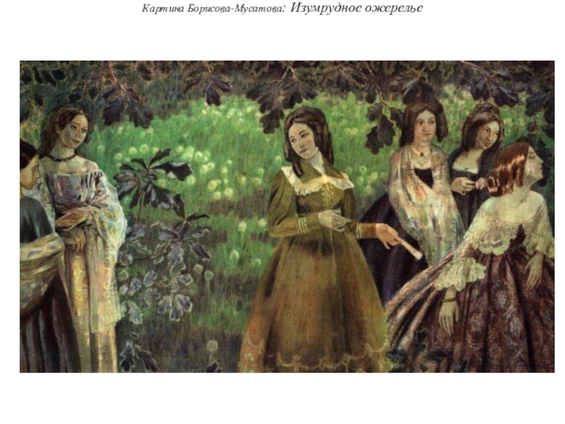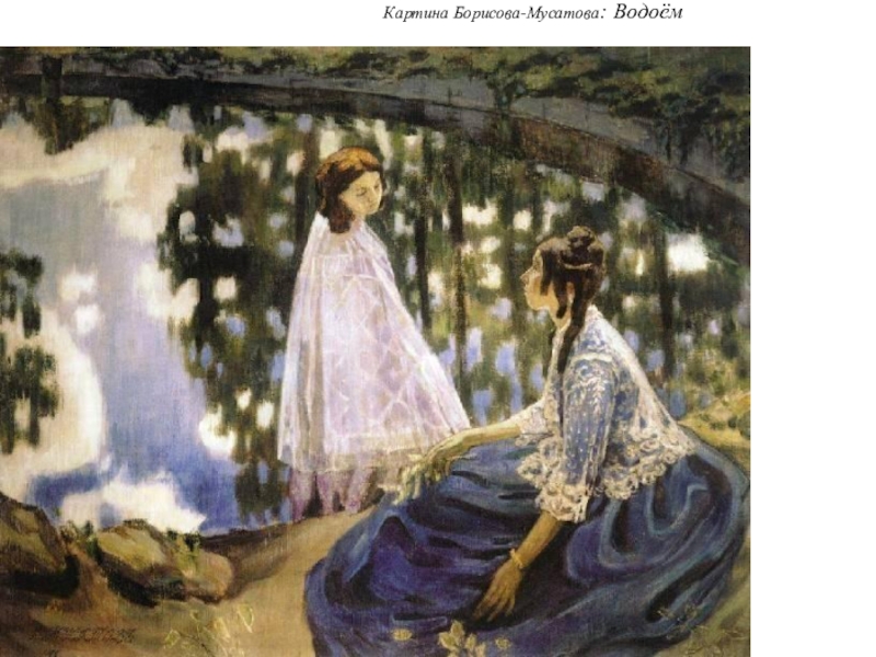 Вернувшись в Саратов, Борисов-Мусатов обнаруживает стремление представить реальный мир как напоминание о прекрасном мире прошлого, выразилась склонность к декоративизму, превращающему картину в подобие панно, и даже любовь к характерному сине-зеленому колориту.